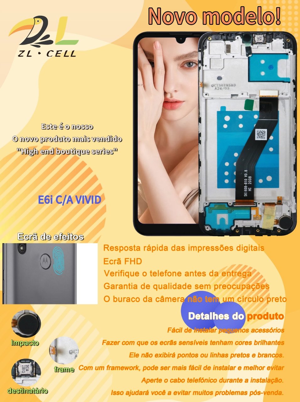 Início Telas Frontal Completa Tela Touch Display E6i